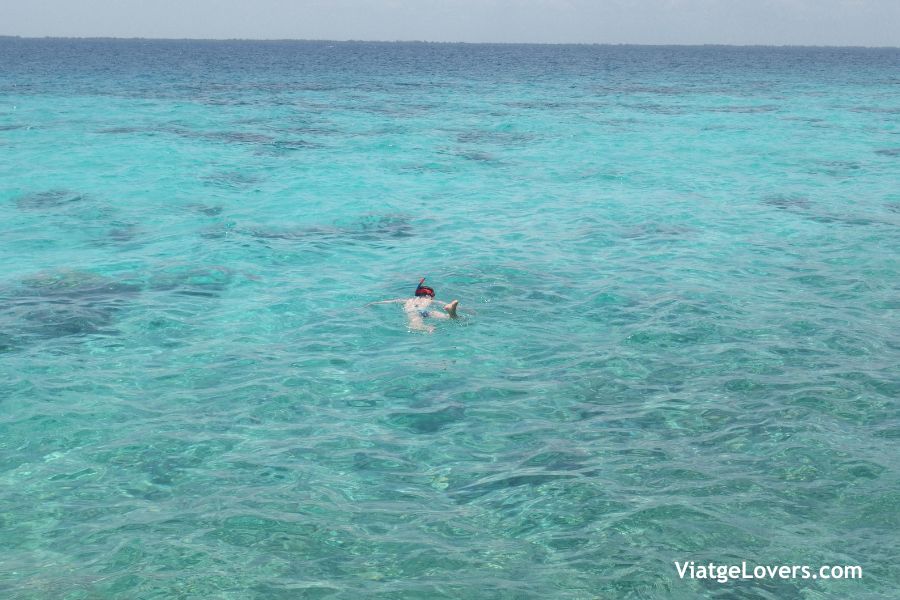 Agua cristalina, tonalidades de azul que iban cambiando según el momento del día, mucha paz, silencio y tranquilidad. Podíamos andar kilómetros sin que apenas cubriera más allá de las rodillas. Eso sí, el sol picaba muy fuerte. Nosotros siempre llevábamos la espalda y los hombros cubiertos.